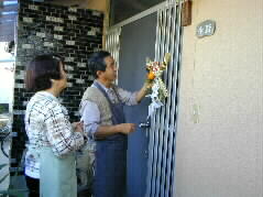 | 次は夫と一緒に玄関にしめ飾りを飾ります。これで一気にお正月の気分になりました。 |  |