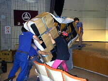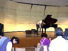 |  | 大きな400kg以上もあるグランドピアノを4人の方でステージに運び上げます。見ているとハラハラしますが、さすがプロです。ちゃんと上がりました。 |