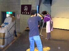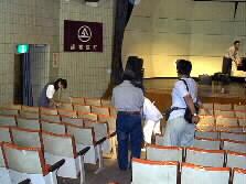 |  | そして12時からは女性も集まって、掃除です。演奏用のピアノが到着したので、ステージの上を大急ぎで掃除をしました。 |