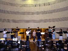 設営の終わった会場で早速、練習を開始されています。私は、なかなか本番をゆっくり聞くということが出来ないので、そっと聞かせて頂きました。