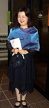 ホテルの協力でメインの出入り口を塞いでもらって無事に音楽会が終了しました。珍しいポジテイブ・オルガンをもっとよく見ようとたくさんの人が取り囲んでいます。演奏を終えて、ファンの方からの花束を持ってカメラに収まって下さった竹井成美さんです。