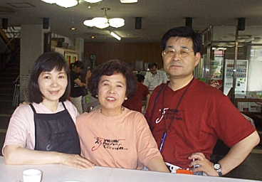 和服姿は、夢想園の社長の志手さんです。右は、竹井成美さんと溝口さんが談笑なさっています。