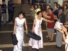 美しいドレス姿の小林美恵さん(左)と大森潤子さんです。