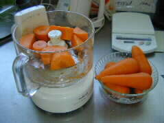 それと平行してもう一種ヘルシーな「ニンジンケーキ」を焼きます。 ニンジンをたくさん使います。 |