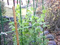 が、寒くなった今も元気に成長を続けています。1m物差しと背比べをしましたら、豆の方が背が高い。