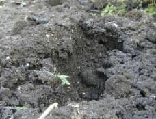 放射冷却現象で畑の土も表面は白く凍ってガチガチでした。きっと明け方は0度近くまで冷えていたんだと思いました。