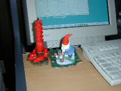 クリスマスまであと1週間です。私のパソコンの机にも小さなクリスマスオーナメントを飾っています。 |