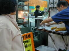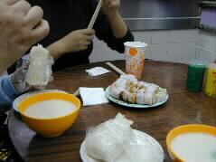 Lillian came to the hotel this morning as well and took us to breakfast in a small restaurant on the street. Today's breakfast is consisted of such foods like steamed sticky rice stick and soup. In the back center is an unusual dish of steamed rice powder that contains shrimp meat. It was really tasty. |
