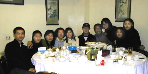 | In a large Chinese restaurant in Shatin, we had a dinner party together with the pupils of Lillian's Japanese class: from left, Eric, Emily, May, Mie, Denise, Kenny, Ken, Lillian, May, and Suki. | |