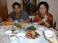 Lillian's father, Mr. Raymond Chow, and mother, Connie, prepared wonderful fish dishes with different kind of sauces. Soup and Tofu were tasty as well. Raymond is an active businessman based in Canton City, China. He shuttles back to home every weekend. He and my husband were pleasantly chatting in English. |