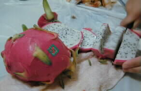 | The dessert today was an unusual fruit called "Dragon tongue." It looks like a kind of vegetable, but white pulp dotted with sesame-like seeds appears from inside. The taste was so good that I ate very much. Lillian's father returned home yesterday in order to welcome us and he will return to Canton City early tomorrow morning. Please come to Japan together next time. We got a taxi from the apartment complex. Lillian and Doris anxiously saw us off. |