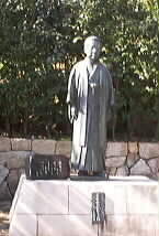 11月、秋晴れの良い天気、駅を出ると、こんな銅像が旅人を迎えてくれました。