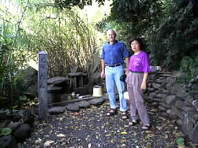 翌日は学芸員の方のお話をもとに島内巡り、豊臣の時代からキリスト教の迫害が始まり、島のキリシタンの方々は隠れキリシタンになりました。それでも踏み絵やいろいろな方法で見つかった人たちは殺されていきました。ここは島の中央部にある、「幸四郎様」です。キリシタン探索に来たお役人がこの当たりで目が見えなくなり島のキリシタンに助けられて治った、そのことからキリシタンとなった役人はやがて見つけられて殺されたと言われている場所です。 |