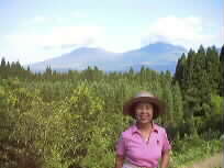 最近の名所、久住高原地ビール村、その前庭からは360度、緑、緑の山。