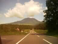 左の方は宮崎との県境の傾山、祖母山、そして熊本県の阿蘇五岳、噴煙は雲と一体に。