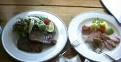左は豊後牛のタンステーキ、カボスをギュットしぼってこちらもおいしかった。