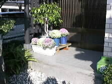 左はお隣の玄関先の葉牡丹の鉢植え、右は近くの家の門のしめ飾り、