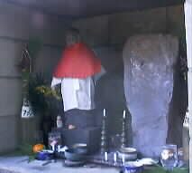 ご先祖様にもお正月、千両が一杯生けてある、お地蔵様にもお飾りが、、