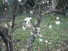 日だまりに咲いていた、左は蝋梅、右は白梅、