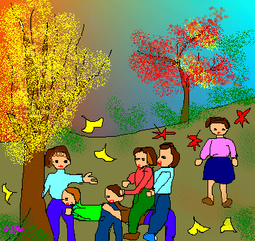 Some of them pick up the pieces of the leaf to make a necklace or a laurel. Children's idea is limitless. They churn out something pleasant next by next.