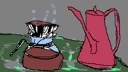 私のお気に入りの席はカウンターの右端、奥の調理場から美佐子さんがひょいと顔を出し こんにちわいらっしゃい。また来ました、と私。 いつものコーヒーと、そう、今日は野苺のアイスクリーム。 |