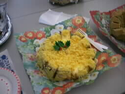 piles of cakes! I brought a yellow mimosa cake.