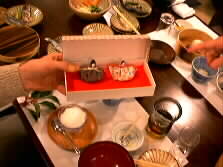 | Mr. Plym was presented a pair of Hina dolls, from Mrs. Sekine's mother. They were made from Japanese cloth. It will be a good souvenir from Japan. After lunch, we enjoyed the famous hot spring of the Tamanoyu hotel. For me, it seems me to clean up my body and mind. |