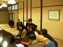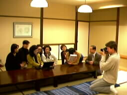 The second off-line meeting of the Braille Conference was held at Yufuin. Mrs. Chika Sekine joined it from Tokyo. Thanks to Mr. Matsumura and Tamanoyu Hotel, the meeting was held in a very nice room. Mr. Kimura, the chairman of the Braille Conference, made an opening speech and proposed a toast wishing the development of the Conference and the health of the participants.