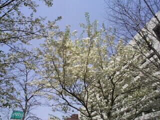 A lot of cherry blossoms were in full bloom under the warm sky.