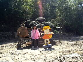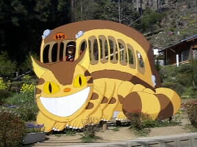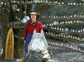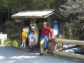 This is Totoro spot in Minami Tabaru village. The spot has long been to be Totoro far before a TV animation program Totoro became so famous. I asked a traffic controller all the way to keep cars away from the bus stop named Totoro to take pictures. There was a long line of inching cars.