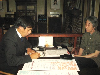 宮崎にも「宮崎音楽祭」という大きな音楽祭があります。手作りのゆふいん音楽祭の様子が知りたいと、事務局長の加藤氏のお話を熱心にメモを取りながら聞かれています。 |