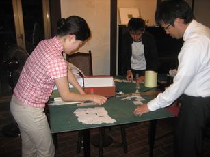 こちらのテーブルでは宛名カードのカットをしています。 |