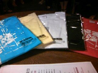 | スタッフは夫々にお気に入りのTシャツを探します。真剣です。スタッフ価格で頂きました。 これを着て、本番はしっかりお客様をお迎えしましょう。 いよいよ音楽祭も来週です。期間中の出席予定を書き出して、今夜は散会です。 |  |