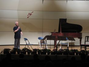 今年の前夜祭は音楽祭総合アドヴァイザーの小林道夫さんが、演奏家紹介など司会をされました。(私はこの頃に会場に入ることが出来ました) |
