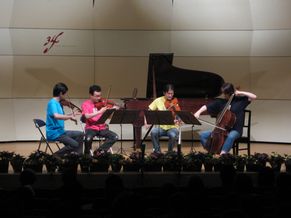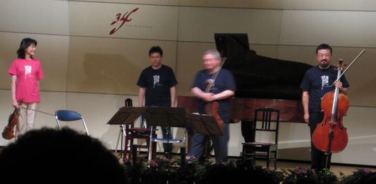 ![]() 前夜祭の最後はシューマンのピアノ四重奏曲 第6番変ホ長調 op.47 左からヴァイオリンの小林美恵さん、ピアノの野田清隆さん、ヴィオラの川崎和憲さん、チェロの河野文昭さん |
