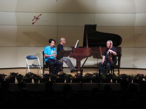 Mブルッフの小品 op.83を演奏される左からクラリネットの高橋知己さん、ピアノの小林道夫さん、ヴィオラの川崎和憲さん |