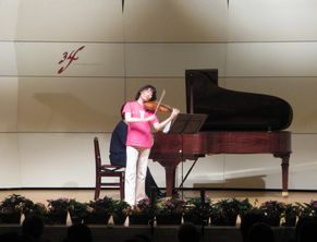 | R.V.ウィリアムズの揚げ雲雀を演奏されるヴァイオリンの小林美恵さんとピアノ野田清隆さん。 | ![]() |