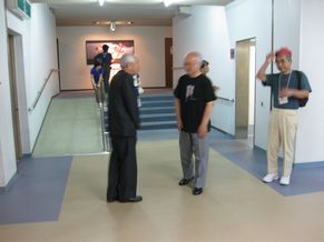 会場から出てきて、談笑される音楽祭代表の溝口薫平さんと、音楽祭総合アドヴァイザーの小林道夫さんです。 |