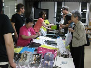 | お客様が、音楽祭グッズのTシャツや、演奏家のCDなど手にとって見て下さっています。 | ![]() |