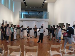 |  | 指揮とお話をされる竹井成美さんも来られて本格的なリハーサルが始まりました。 |