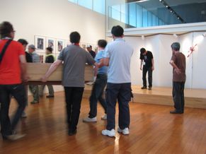| 既に午後のステージのリハーサルが始まっていました。スタッフが並べた椅子の調整をしたり、リハーサルを聞かせてもらったりしました。 |  |