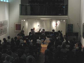 | 続いてのステージはC・P・E・バッハ チェンバロと弦楽器のための協奏曲 ト長調(Wq.34 H.444)桐山健志(ヴァイオリン)長岡聡季(ヴァイオリン) 吉田篤(ヴィオラ) 西沢央子(チェロ)と演奏が続きました。終了後も皆さん去りがたく、拍手が盛んでした。 | |